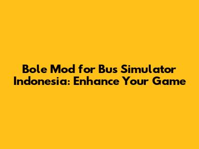 Bole Mod For Bus Simulator Indonesia: Enhance Your Game