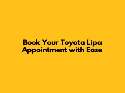 Hey guys! So, you're looking to book an appointment at Toyota Lipa? Awesome! Getting your car serviced or maybe looking for a new ride can be a bit of a hassle, but it doesn't have to be. We're here to break down exactly how you can secure your spot at Toyota Lipa without any drama. Think of this as your ultimate guide to a smooth and stress-free Toyota Lipa appointment experience. We'll cover everything from what you can expect, the best ways to book, and why it's super important to get that appointment locked in. Whether you're a seasoned Toyota owner or new to the family, this guide is packed with tips to make your visit a breeze. So, grab a coffee, sit back, and let's dive into how you can get that Toyota Lipa appointment sorted in no time. We want to make sure you're well-informed and ready to go, so you can spend less time worrying about your car and more time enjoying the drive. Let's get this done, folks!
