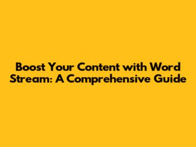 Boost Your Content With Word Stream: A Comprehensive Guide