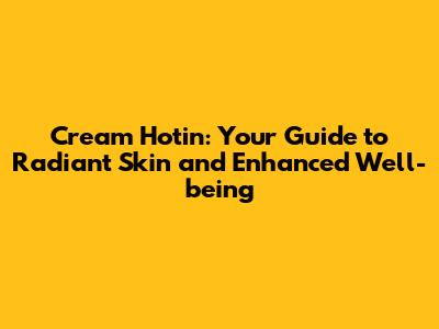 Cream Hotin: Your Guide To Radiant Skin And Enhanced Well-being
