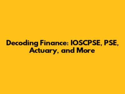 Decoding Finance: IOSCPSE, PSE, Actuary, And More