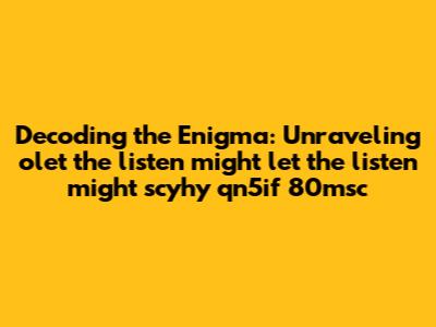 Hey guys! Ever stumbled upon a string of characters that just makes your head spin? Today, we're diving deep into one such mystery: 'olet the listen might let the listen might scyhy qn5if 80msc'. It looks like a jumbled mess, right? But let's break it down and see if we can make some sense of it. This could be anything from a random password to a snippet of code, or even just gibberish. Our mission is to explore the possibilities and try to figure out what it could mean, even if we can't pinpoint its exact origin without more context. So, grab your detective hats, and let's get started!