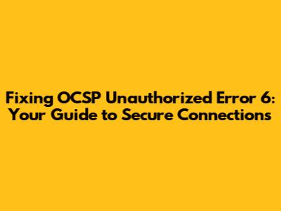 Fixing OCSP Unauthorized Error 6: Your Guide To Secure Connections