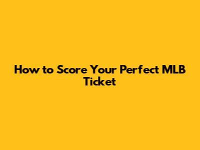 How To Score Your Perfect MLB Ticket