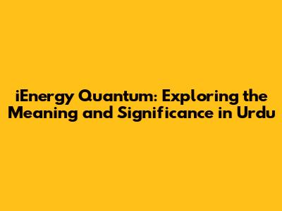 IEnergy Quantum: Meaning & Significance In Urdu