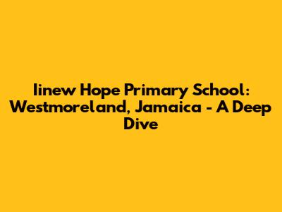 Hey everyone! Today, we're taking a trip to the heart of Westmoreland, Jamaica, to explore the Iinew Hope Primary School. This school is more than just a place of learning; it's a vibrant hub where young minds blossom. We'll delve into its history, academic achievements, community involvement, and the challenges it faces. Get ready for an interesting journey as we uncover what makes Iinew Hope Primary a vital part of the Westmoreland community. Whether you're a parent, educator, or simply curious, this article is for you!