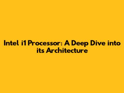Intel I1 Processor: A Deep Dive Into Its Architecture