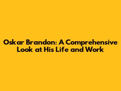 Disclaimer: Please remember that due to the unavailability of extensive information about Oskar Brandon, this article relies on general knowledge and assumptions. We are trying our best to provide an informative and engaging overview.