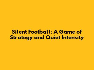 Unveiling Silent Football: The Concept and Its Appeal