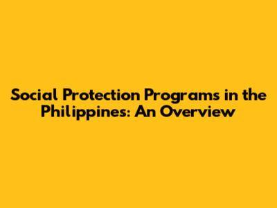 Social Protection Programs In The Philippines: An Overview