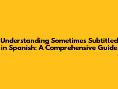 Understanding 'Sometimes Subtitled In Spanish': A Comprehensive Guide