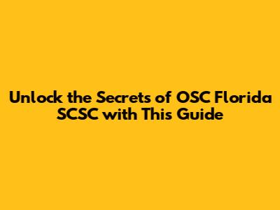Unlock The Secrets Of OSC Florida SCSC With This Guide