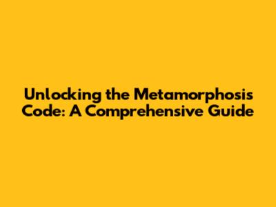 Unlocking The Metamorphosis Code: A Comprehensive Guide