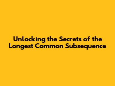 Unlocking The Secrets Of The Longest Common Subsequence