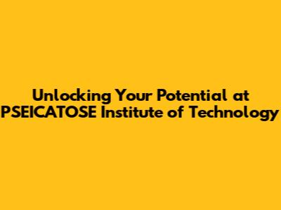 Unlocking Your Potential At PSEICATOSE Institute Of Technology