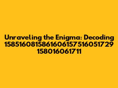 Unraveling The Enigma: Decoding 1585160815861606157516051729 158016061711