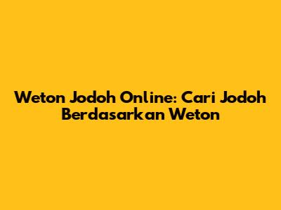 Weton Jodoh Online: Cari Jodoh Berdasarkan Weton